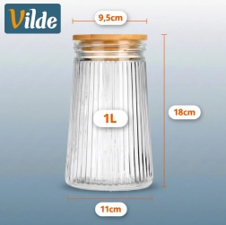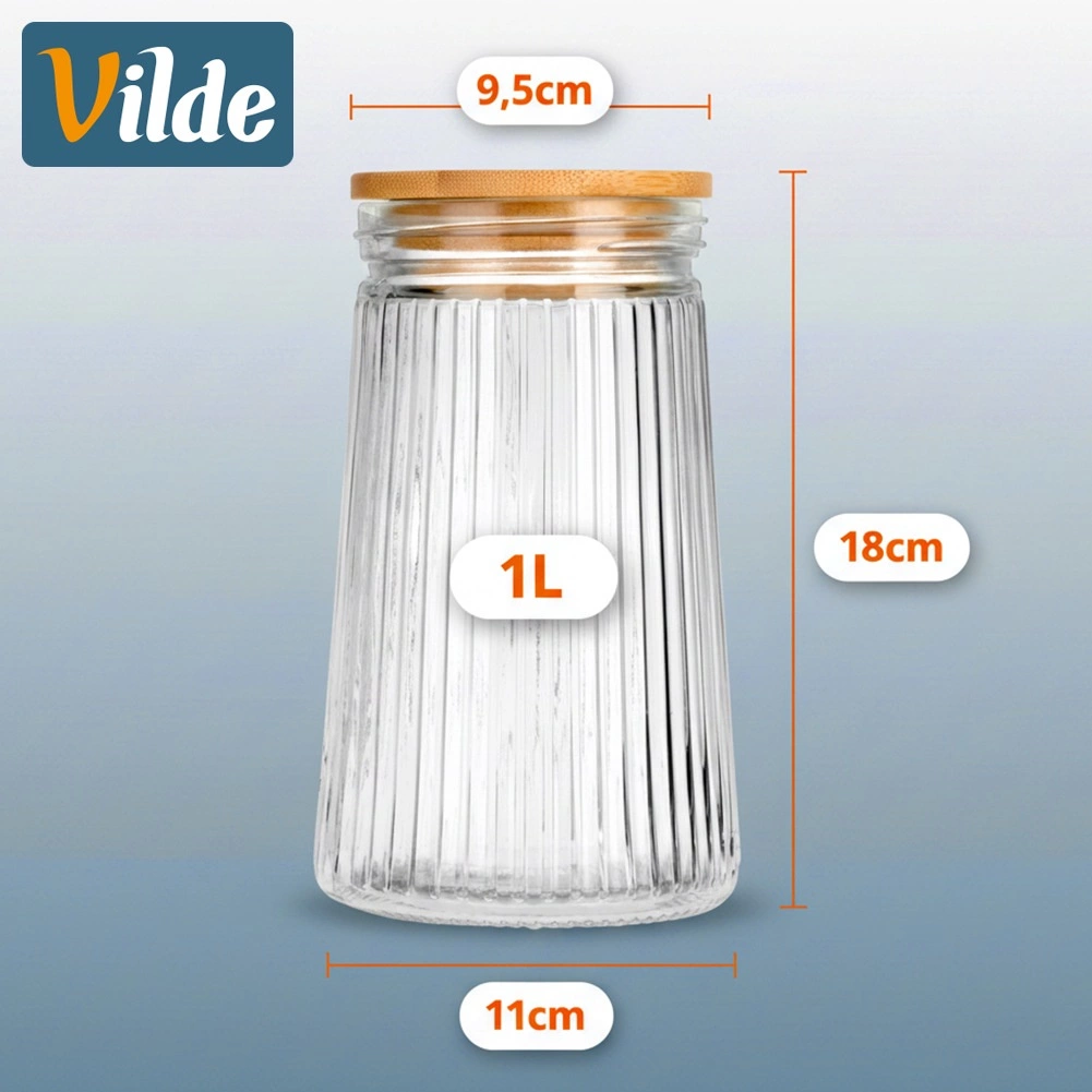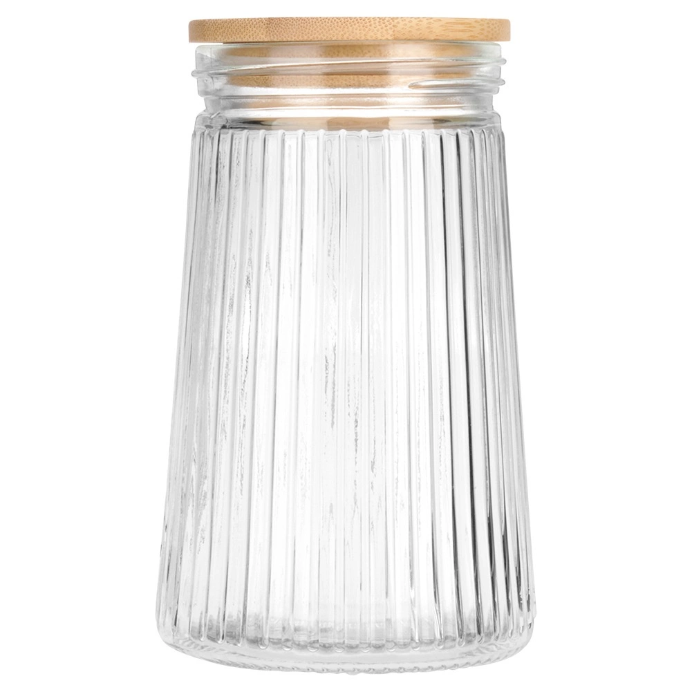 Glazen geribbelde pot met bamboe deksel en afdichting 1 l