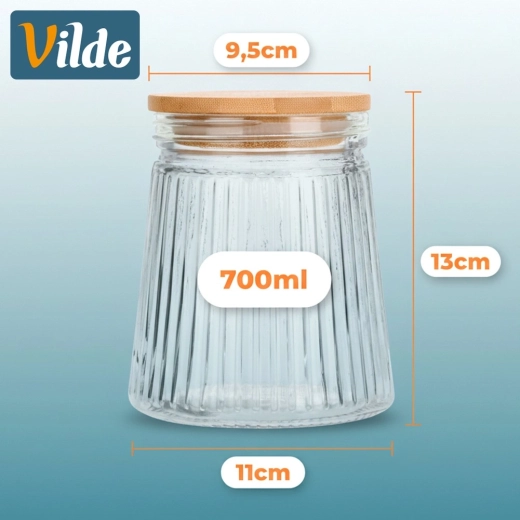 Dankzij de compacte afmetingen (bovendoorsnede 9,5 cm, onderdoorsnede 11 cm, hoogte 13 cm) past hij perfect op het aanrecht en in de voorraadkast. De pot is ideaal voor droge levensmiddelen zoals koffie, muesli, gedroogde paddenstoelen, pasta, noten of granen. Het glazen lichaam kan gemakkelijk in de vaatwasser, het deksel bij voorkeur met de hand afwassen.
