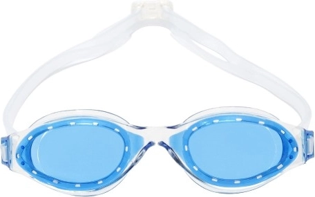 Zachte, comfortabele en vooral stijlvolle kinderzwembril met een verstelbare siliconen band en neusstuk. De bril heeft getinte glazen, polycarbonaat lenzen met een UV-beschermende coating. De bril is 100% latexvrij. De bril is 15 cm breed. Geschikt voor kinderen vanaf 14 jaar.