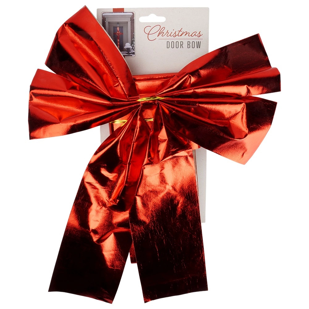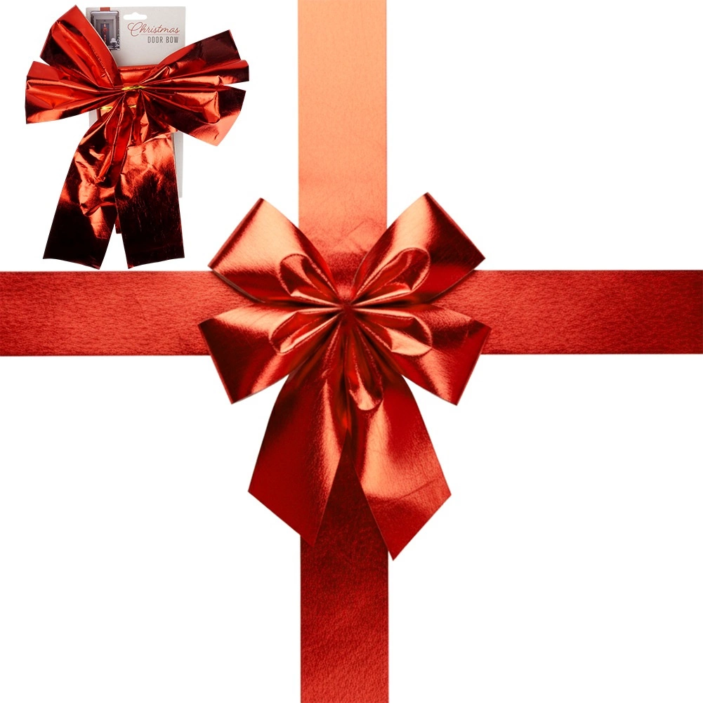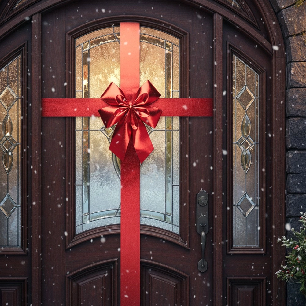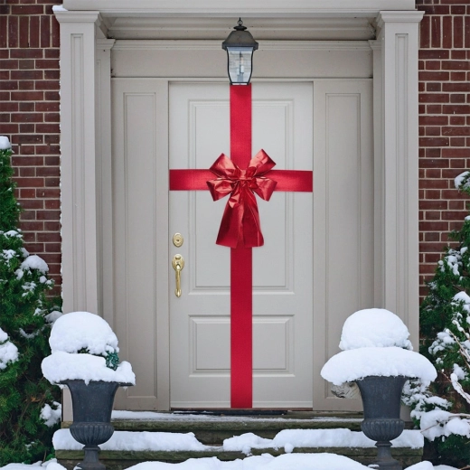 Breng in enkele minuten een echte feestelijke sfeer in huis. Deze opvallende rode strik met een lint van 4,3 m maakt het mogelijk om standaarddeuren zowel verticaal als horizontaal te versieren en creëert het effect van een cadeauverpakking. Het glanzende oppervlak weerkaatst prachtig het licht en geeft de decoratie een luxe en feestelijke uitstraling.