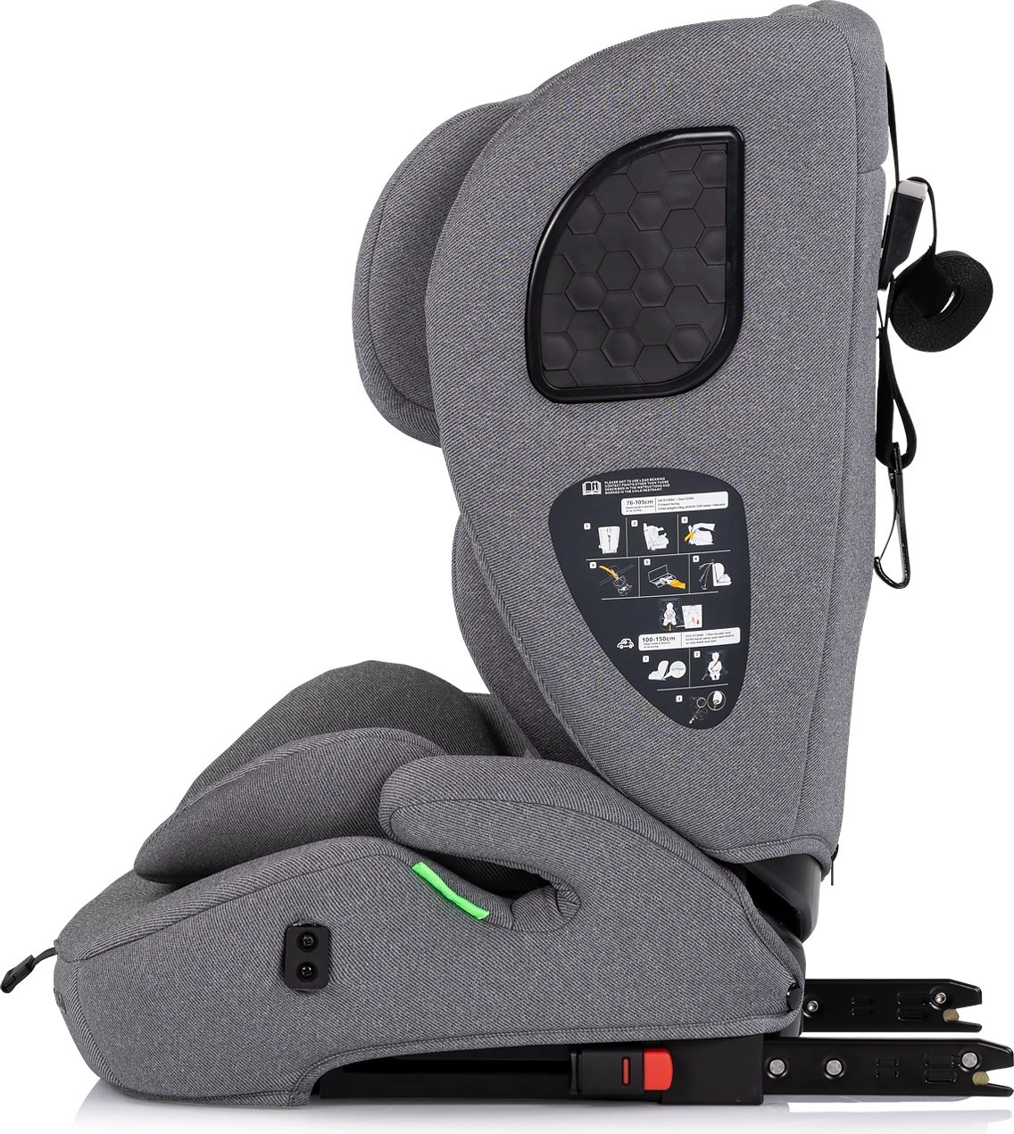 - Eenvoudige installatie: ISOFIX + Top Tether (76–105 cm); 3-punts autogordel met/zonder ISOFIX (100–150 cm)