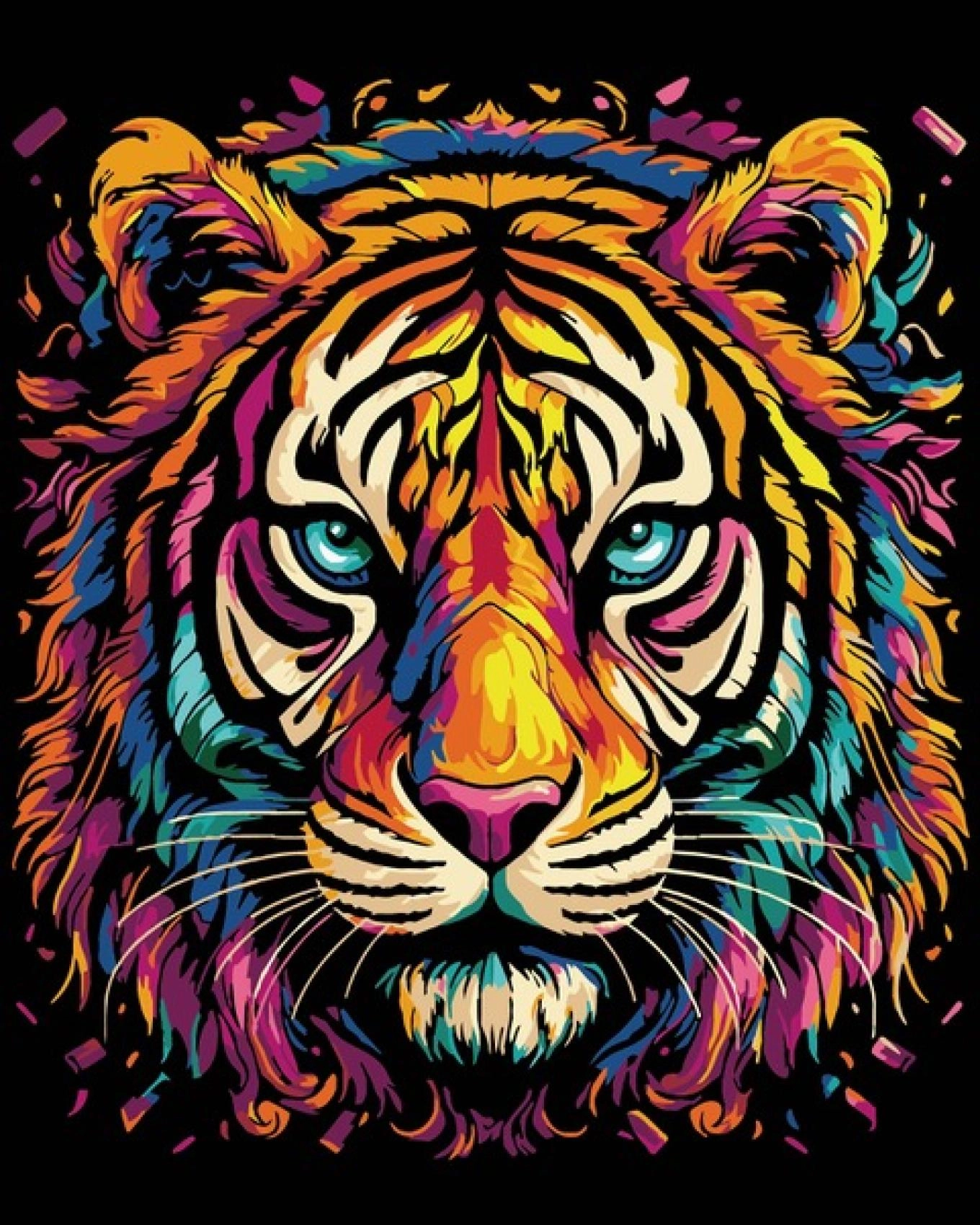 Deze set biedt een eenvoudige manier om je onder te dompelen in de wereld van het schilderen en tegelijk te ontspannen. Dankzij de duidelijke indeling in genummerde secties bereik je een prachtig resultaat, zelfs als je net begint met schilderen. Het motief van de majestueuze tijger komt schitterend tot zijn recht aan de muur van de woonkamer, slaapkamer of werkkamer.