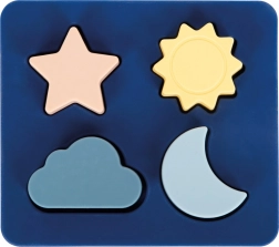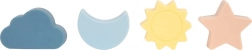 Vier stukjes in de vorm van een zon, maan, ster en wolkje ondersteunen de ontwikkeling van fijne motoriek, coördinatie en zintuiglijke waarneming.