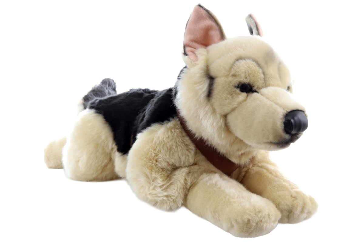 Deze elegante pluche Duitse herder met tuigje is een geweldige metgezel voor dagelijks spel en knuffelmomenten. De realistische uitvoering met rijke beige-zwarte vacht en opvallende oren oogt levensecht en spreekt zowel kinderen als volwassenen aan. Dankzij het aangenaam zachte oppervlak ligt hij fijn in de hand, biedt troost en is ook een decoratieve aanvulling voor de kinderkamer.