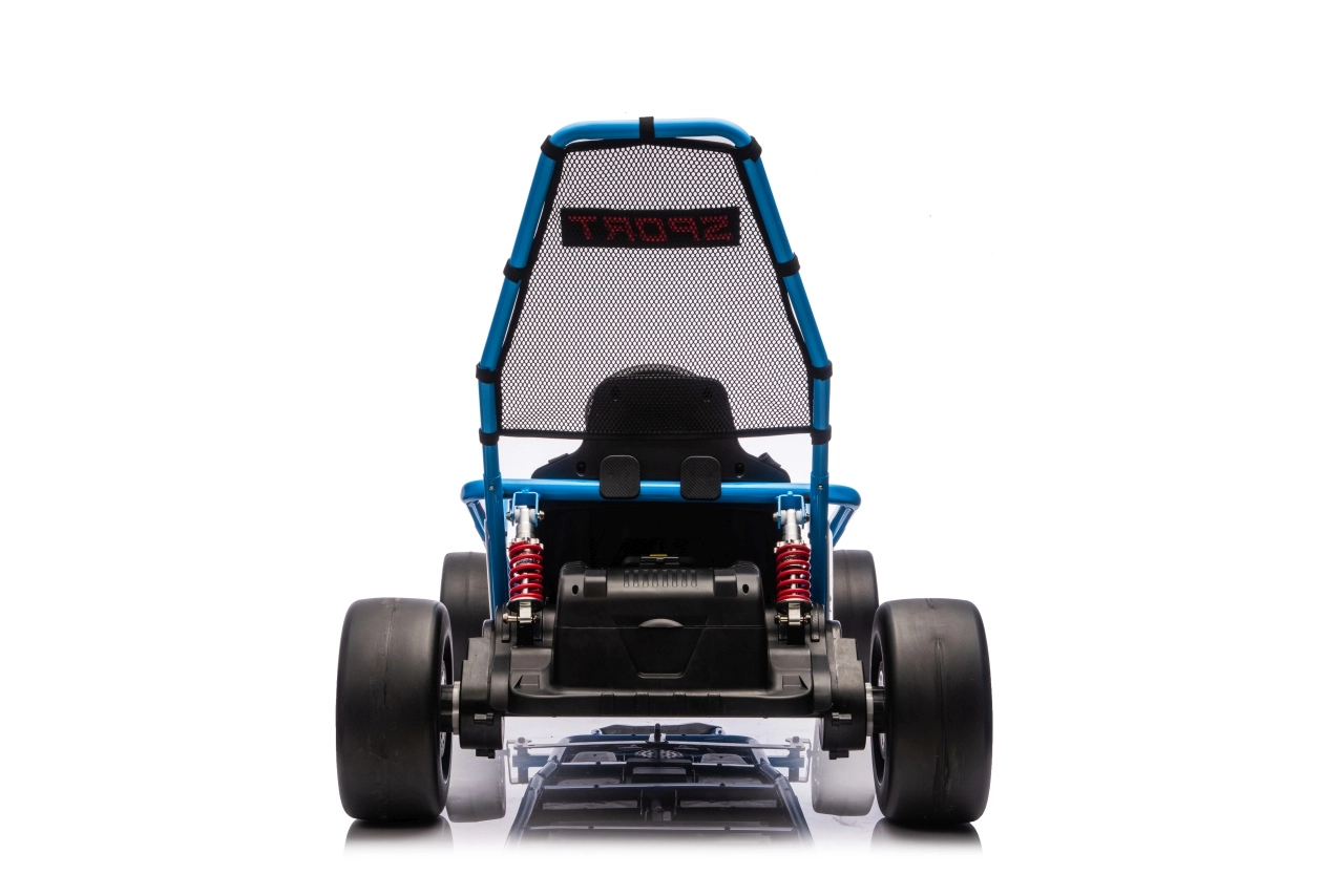 De TORNADO kart is de ideale keuze voor kleine racers die zowel de adrenaline van driften als comfortabel rijden willen beleven. Voorste EVA-schuimwielen (21×9 cm) bieden uitstekende grip, terwijl de achterste kunststof wielen (25×12 cm) ontworpen zijn voor makkelijk driften. Dankzij de soepele start, keuze uit 2 snelheden en rijden vooruit/achteruit leren kinderen het voertuig zeker en veilig beheersen.
