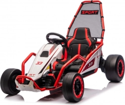 TORNADO is een sportieve elektrische kart voor kinderen die stabiliteit, vermogen en puur rijplezier combineert. Dankzij de voorste EVA-wielen en de achterste kunststof wielen voor drift genieten kinderen zowel van nauwkeurige koerscontrole als van gecontroleerde slippartijen. De zachte start beschermt jonge bestuurders tegen schokken en twee instelbare snelheden helpen het tempo af te stemmen op de vaardigheden van het kind.