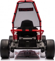 Start het plezier met de elektrische kinderkart TORNADO, met een driftfunctie, krachtige twee motoren 2×150 W en een betrouwbare 24 V 7 Ah accu. Voorste EVA-wielen voor grip, achterste kunststof driftbanden voor eenvoudige drifts, twee snelheden, soepele start en achterste verstelbare schokdempers zorgen voor een vloeiende en veilige rit. Inclusief audiopaneel met MP3/USB/Bluetooth, laadindicator en sportstoel met veiligheidsgordels.