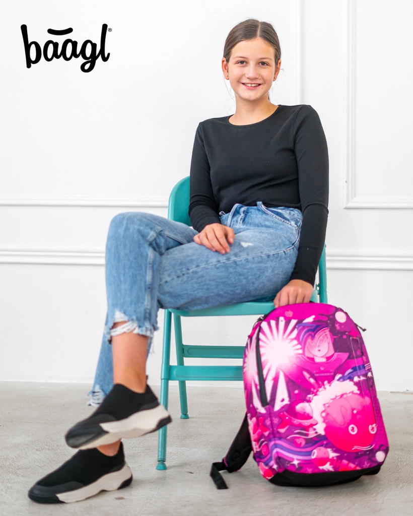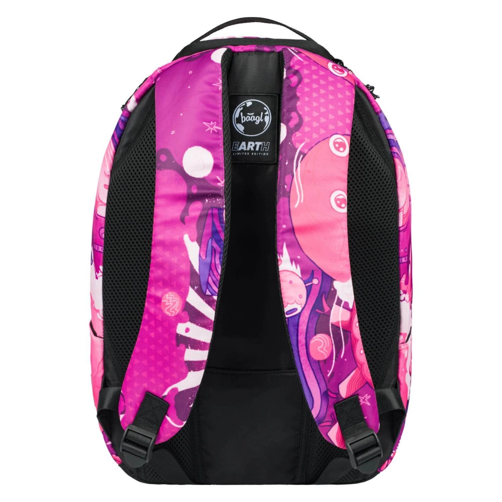 Stijlvolle stads- en schoolrugzak BAAGL uit de eARTh-lijn, gemaakt van 100% gerecycled, waterafstotend materiaal, met een kosmisch UFO-motief. Voorzien van ergonomisch gevormde rug, comfortabele verstelbare schouderbanden, een binnenvak voor een 15" laptop en praktische voor- en bovenvakken met rits. Met een laag gewicht van 500 g, inhoud van 18 l en draagvermogen tot 7 kg is hij ideaal voor elke dag.
