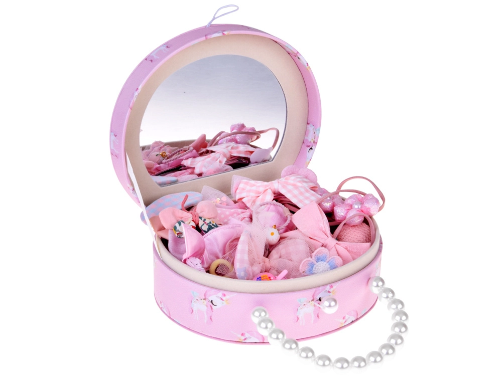 De klep met spiegel maakt het kinderen mogelijk zelf kapsels en accessoires uit te proberen – altijd en overal.