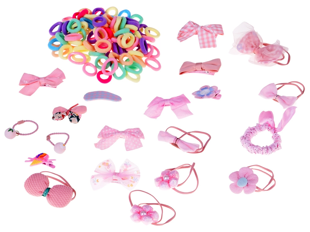 10 clipjes, 10 decoratieve elastiekjes en ca. 100 mini elastiekjes in verschillende kleuren voor creatieve kapsels.