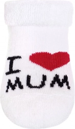 De elastische boord zorgt ervoor dat de sokken stevig blijven zitten, maar niet knellen. Het moderne witte design met de lieve print I Love Mum and Dad is makkelijk te combineren met kleding en is een leuk cadeau voor een pasgeboren baby.