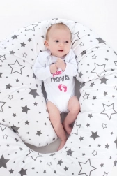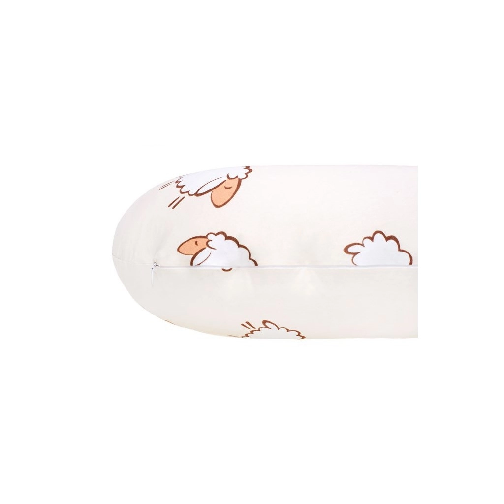 Het C‑vormige voedingskussen is een praktische hulp vanaf de zwangerschap tot en met de borstvoedingsperiode. Het omhult het lichaam en biedt volledige lichaamssteun voor comfortabel zijliggen, een juiste uitlijning van de wervelkolom en een fijne houding tijdens het voeden. De beige hoes met schaapjesprint oogt zacht en knus in elk interieur.