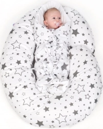 De royale vorm omsluit het hele lichaam en ondersteunt hoofd, buik, rug en benen voor een rustige slaap en comfortabel voeden.