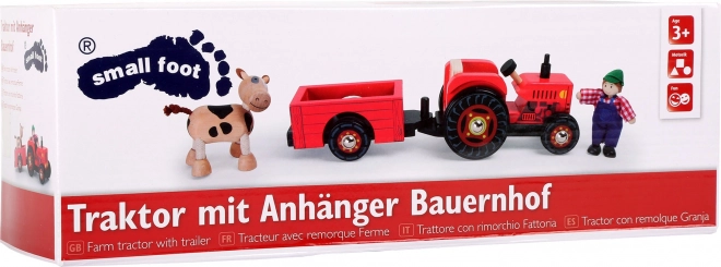 Ontdek de charme van het platteland met de houten trektraktor van small foot, compleet met een boer en een koe. Dankzij de beweegbare figuren en gerubberde wielen voor stille ritten genieten kinderen van veilig en rustig speelplezier. De afneembare aanhanger stimuleert creatieve rollenspellen en het spel bevordert op natuurlijke wijze de verbeelding, spraak en sociale vaardigheden.
