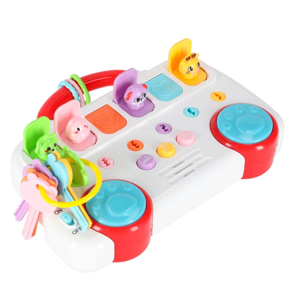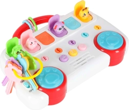 De muzikale educatieve bus betovert kinderen met kleurrijke sleutels, leuke geluiden en schattige diertjes. Elk van de zes diertjes zit achter een deurtje verborgen – koppel de sleutel op nummer en kleur en na het draaien springt het diertje tevoorschijn. Zo stimuleert het speelgoed spelenderwijs logisch denken, oog-handcoördinatie en herkennen van cijfers en kleuren.