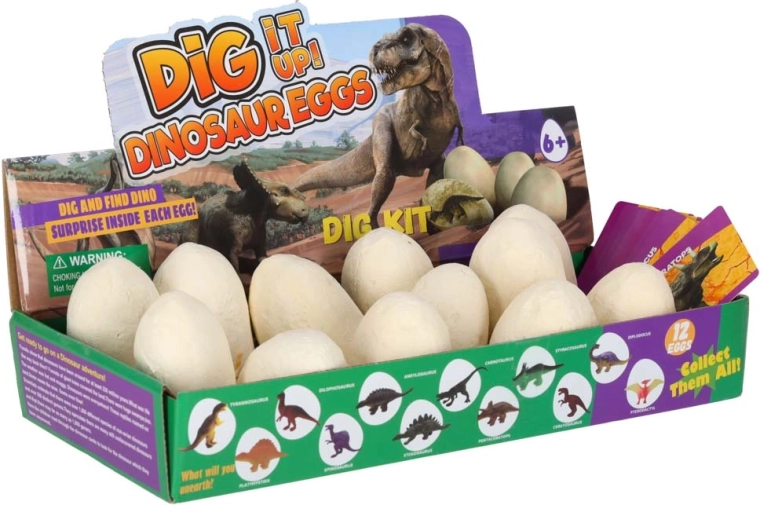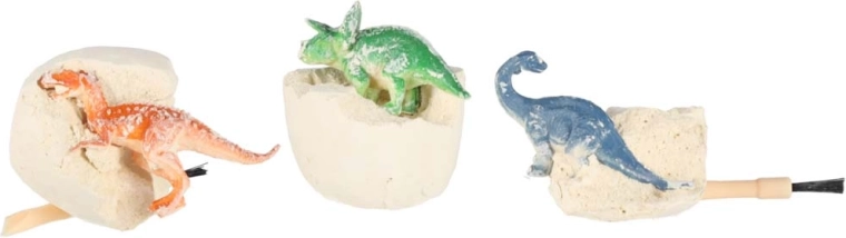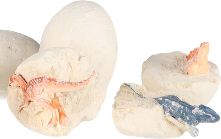 Deze leuke en leerzame set neemt kinderen mee in de wereld van de archeologie. Elk van de 12 gipseieren verbergt een minifiguurtje van een dinosaurus, dat kinderen voorzichtig uitgraven met de meegeleverde beitel en kwast. Tijdens het spel trainen ze geduld, concentratie en fijne motoriek en leren ze tegelijk over het leven van prehistorische wezens.
