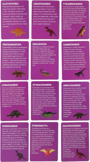 De meegeleverde educatieve kaarten met beschrijvingen van dinosaurussen stimuleren kennis, verbreden de horizon en verbinden plezier met echte feiten.