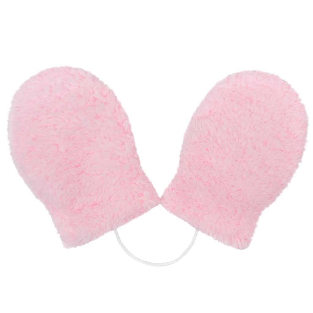 Zachte wantjes houden de handjes warm en raken dankzij het verbindingskoord niet kwijt.