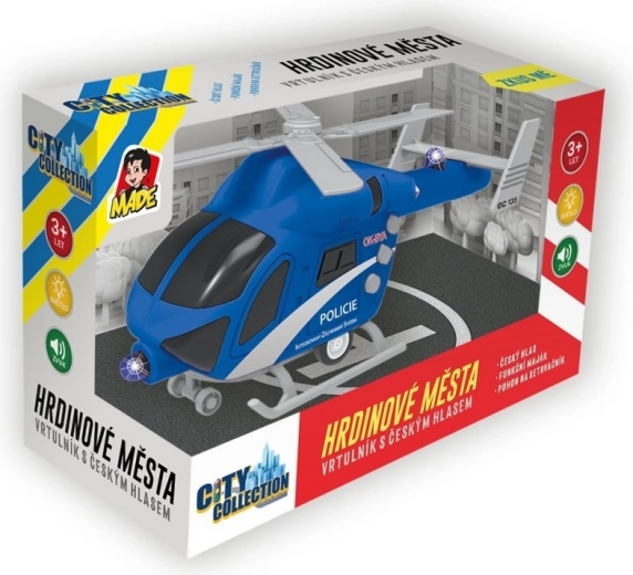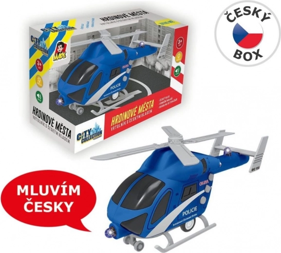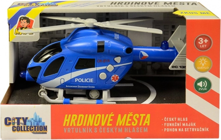 Realistische politiehelikopter in Tsjechische uitvoering die kinderen vanaf 3 jaar zal verrassen. Biedt licht- en geluidseffecten, een werkende zwaailamp en Tsjechische meldingen van de meldkamer en piloot. Dankzij het vliegwiel rijdt hij gemakkelijk weg en zorgt voor veel actierijk speelplezier.