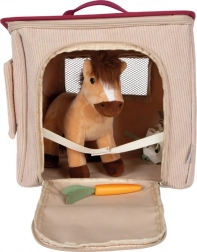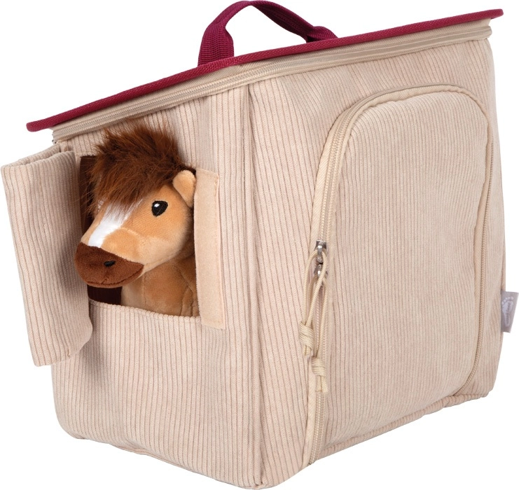 De stevige corduroy tas met ritssluiting verandert direct in een stal. Dankzij het handvat nemen kinderen hem makkelijk overal mee naartoe – ideaal voor thuis en op reis.