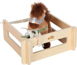 Deze gedetailleerde small foot speelset geeft kinderen alles wat ze nodig hebben voor de paardenwereld. De stevige corduroy tas verandert dankzij de ritsen in een praktische stal en opbergruimte voor accessoires. Voor de stal kun je een hekje met klittenband neerzetten of het als een cirkel sluiten als uitloop – het spel voelt realistisch en stimuleert vrij verhalen vertellen.