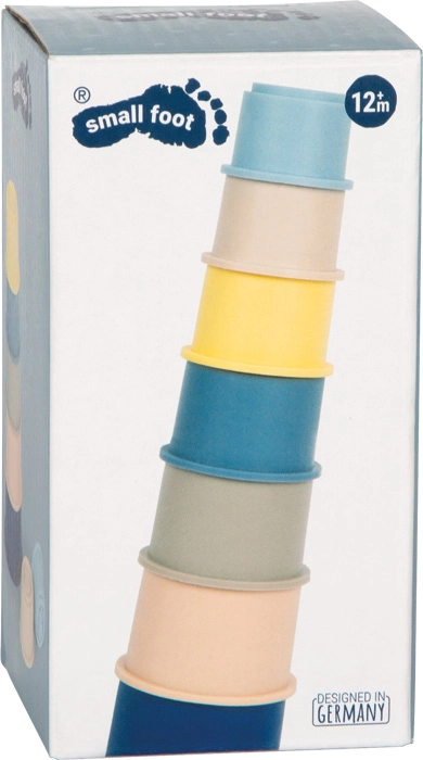 Set van 7 zachte BPA-vrije SMALL FOOT siliconen bekers voor leuk stapelen en sorteren thuis, in bad en in de zandbak. Dankzij de schattige diermotieven en verschillende maten ontwikkelen kinderen spelenderwijs fijne motoriek, oog-handcoördinatie en inzicht in formaten en vormen. Het materiaal is veilig, flexibel, geurloos en gemakkelijk te reinigen.