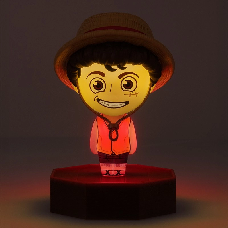 Stijlvolle tafellamp geïnspireerd door de wereld van ONE PIECE die elke kamer opfleurt. Het personage Luffy zorgt voor aangename, sfeervolle verlichting, ideaal voor op een plank, bureau of nachtkastje. Eenvoudige voeding met 2× AAA-batterijen (niet inbegrepen) en compacte afmetingen maken er een geweldig cadeau van voor animefans.