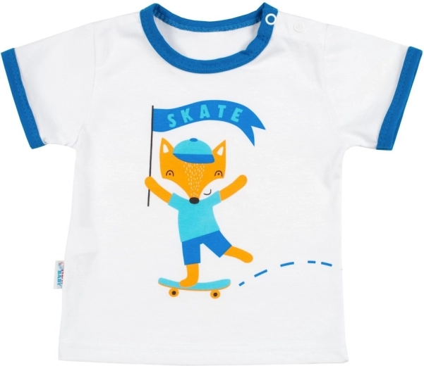 Schattige 2-delige katoenen set NEW BABY met een vosmotief, perfect voor elke kleine jongen. Bevat een T‑shirt met korte mouwen en comfortabele korte broek, ideaal voor de zomer. Het T‑shirt heeft een praktische sluiting op de schouder voor gemakkelijk aankleden en is versierd met een vrolijke afbeelding van een vos met de tekst SKATE. De korte broek is effen met een elastische tailleband. Gemaakt van 100% katoen voor zachtheid, ademend vermogen en comfort bij dagelijks gebruik.