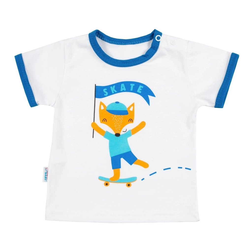 Ontdek comfort en stijl in één – de babyset NEW BABY met vosmotief is een uitstekende keuze voor warme dagen. Het T‑shirt met korte mouwen heeft contrasterende boorden rond de hals en mouwen, een vrolijke vosprint en een schoudersluiting die het over het hoofd aantrekken vergemakkelijkt.