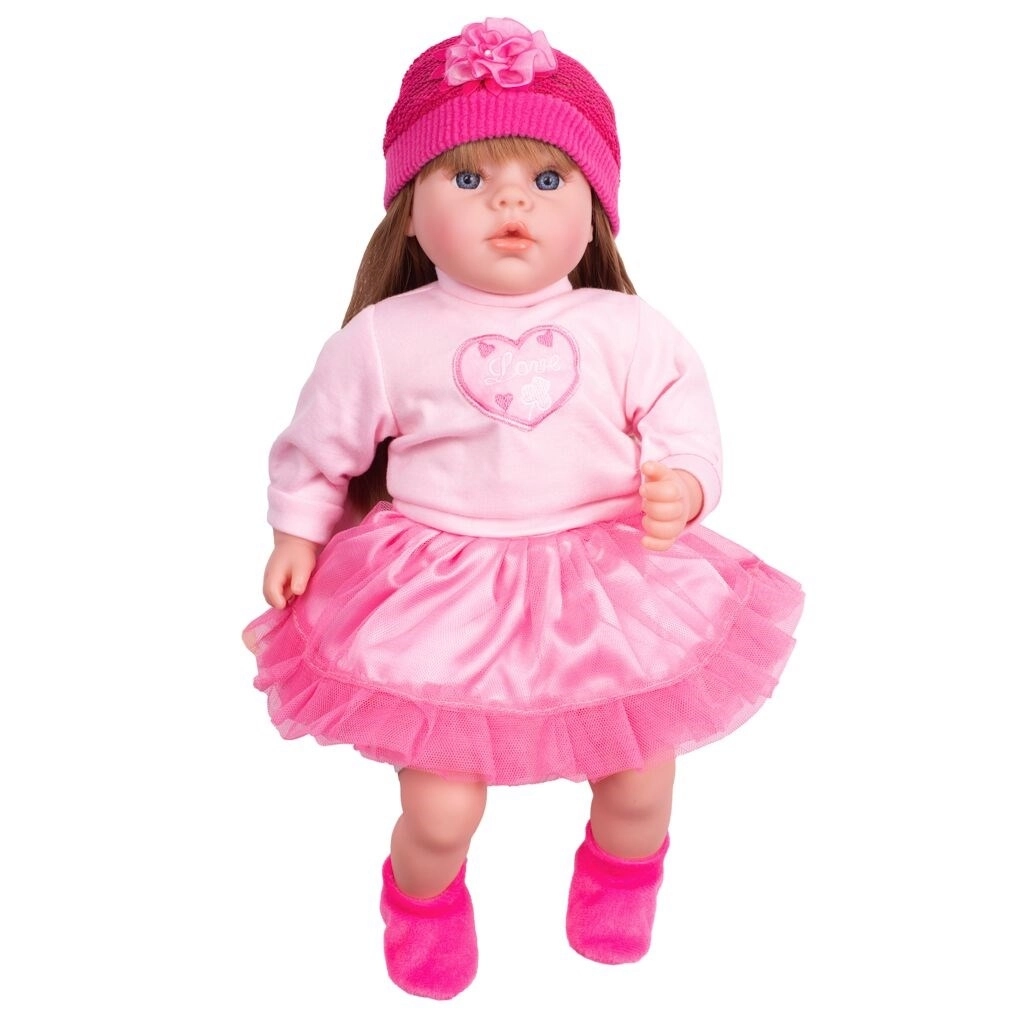 PlayTo Tina is een betoverende pop met een lief gezichtje, blauwe ogen en roze lippen, die het hart van elk kind verovert. Het zachte lijfje is perfect om te knuffelen, terwijl het hoofd, de armen en de benen van rubber een realistische uitstraling en een prettig gevoel geven. In haar stijlvolle outfit – tule rokje, T-shirt met opdruk, sokken en mutsje – ziet ze er altijd geweldig uit, en je kunt de kleding eenvoudig uittrekken en wassen.