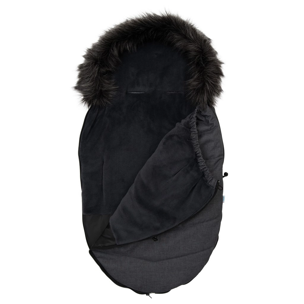 Dankzij de universele multipoort-gordelopeningen is de voetenzak compatibel met de meeste kinderwagens en sommige autostoeltjes. Na het losritsen van de bovenlaag kan de voetenzak worden gebruikt als een warme inleg voor de kinderwagen. De verstelbare capuchon met afneembare kunstbont zorgt voor een stijlvolle afwerking.