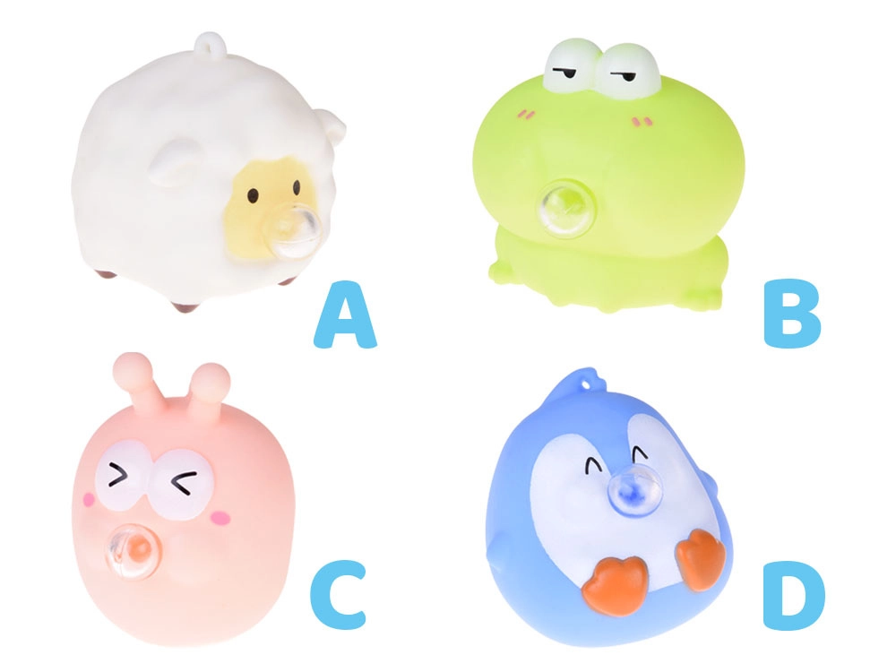 - Anti-stress knijpspeeltje (squishy) in de vorm van een dier met opblaasbaar ballonnetje