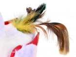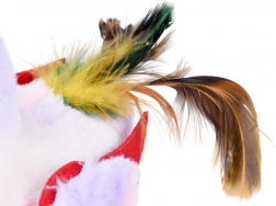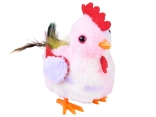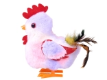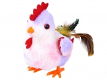 Plaats twee AA-batterijen onder het buikje en zet de rode schakelaar op “ON”. De kip begint te: