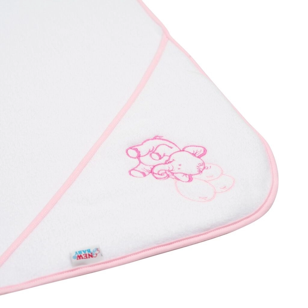Zachte en knuffelige babyhanddoek met capuchon New Baby van 80 × 80 cm, ideaal voor zowel baby’s als oudere kinderen. Gemaakt van kwaliteitsbadstof die zeer goed absorbeert, snel droogt en na het baden heerlijk verwarmt. De praktische capuchon beschermt het hoofdje tegen kou en de vrolijke olifantenborduursel zorgt voor plezier bij elk badmoment.