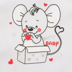 Schattige babyset New Baby Mouse van zachte 100% katoen, met comfort en praktische details. Bevat een boxpakje en een jasje met zacht materiaal dat vriendelijk is voor de huid, gemakkelijke drukknoopsluiting en een lief muizenmotief.