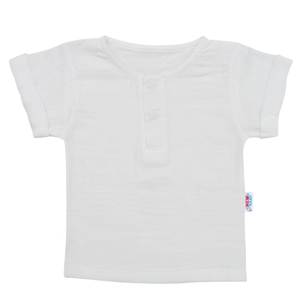 Lichte en luchtige tweedelige mousselineset voor baby’s van het merk New Baby in donkerblauw. Bevat een T‑shirt met korte mouwen en short met een comfortabele, bredere elastische tailleband die niet op het buikje drukt. Mousseline van 100% katoen is zacht, ademend en ideaal voor zomerse dagen.