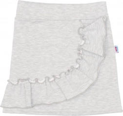 Het rokje in grijs gemêleerd heeft een mooie volant die luchtig en meisjesachtig oogt. In de taille zit een bredere elastische band die zich aanpast en niet knelt. De combinatie van puur katoen voor het T-shirt en katoen met elastaan voor het rokje zorgt voor zachtheid, ademend vermogen en prettige elasticiteit voor comfort de hele dag door.