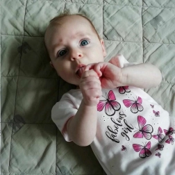 De stijlvolle en comfortabele set New Baby Butterflies is een geweldige keuze voor baby’s van 3 tot 6 maanden. Het T-shirt met subtiel geplooide mouwtjes is versierd met een speels vlindermotief dat outfits een zachte en charmante uitstraling geeft. De praktische drukknoopsluiting op de schouder maakt aankleden over het hoofdje makkelijker.
