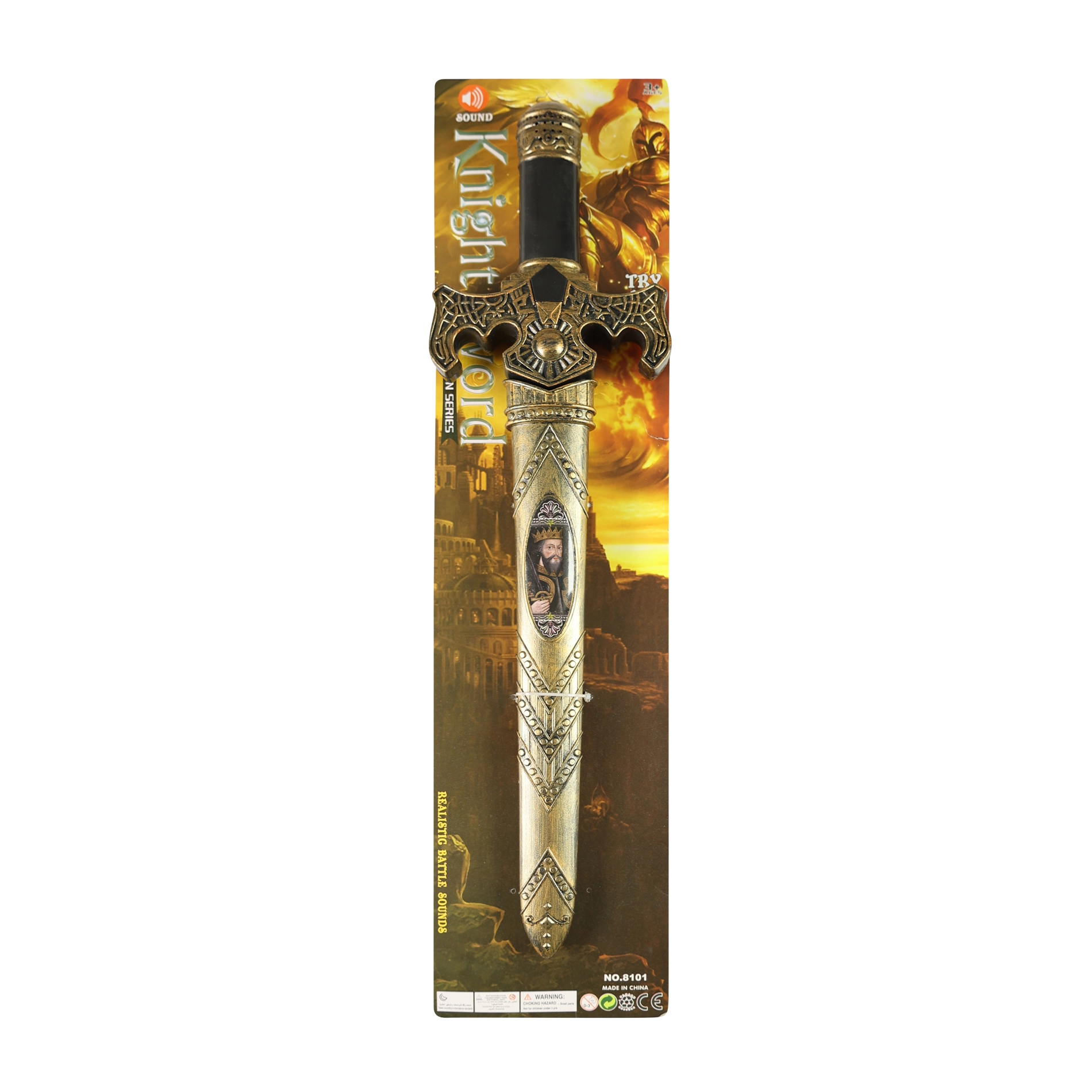 Verander kleine avonturiers in dappere helden met dit ridderzwaard! Het biedt geluidseffecten, een gouden schede en een ideale lengte van 55 cm voor kinderspel, carnaval en thuisgevechten. Werkt op 2× AA-batterijen (niet inbegrepen).