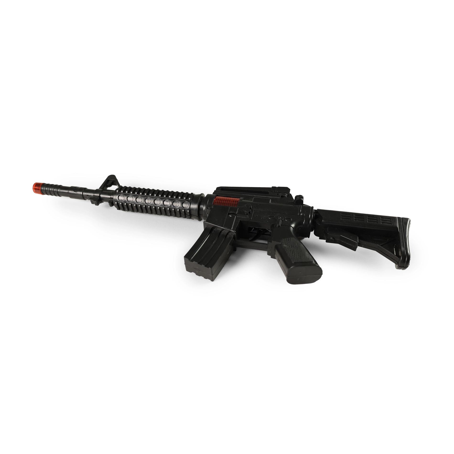 Dit speelgoed‑machinepistool zal alle kleine avonturiers enthousiasmeren. Bij het indrukken van de trekker klinken realistische soundeffects en het vonkeffect geeft de actie‑missie extra spanning en sfeer. De duurzame uitvoering is ideaal voor spelen binnenshuis en buiten.