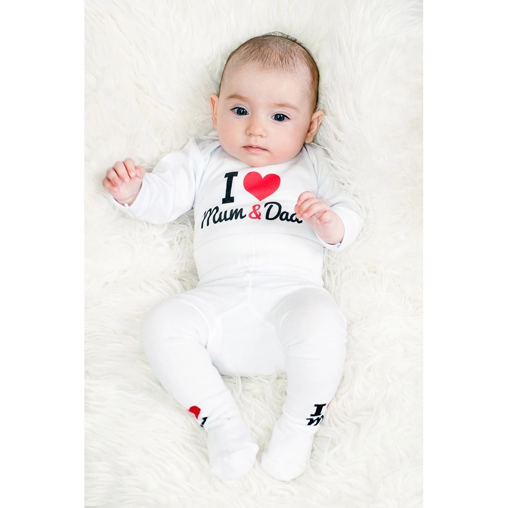 Geef je baby comfort en stijl met het originele NEW BABY rompertje met de grappige tekst I Love Mum and Dad. Hoogwaardige katoen is prettig aanvoelend, ademend en ideaal voor dagelijks gebruik.