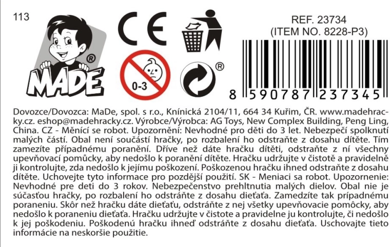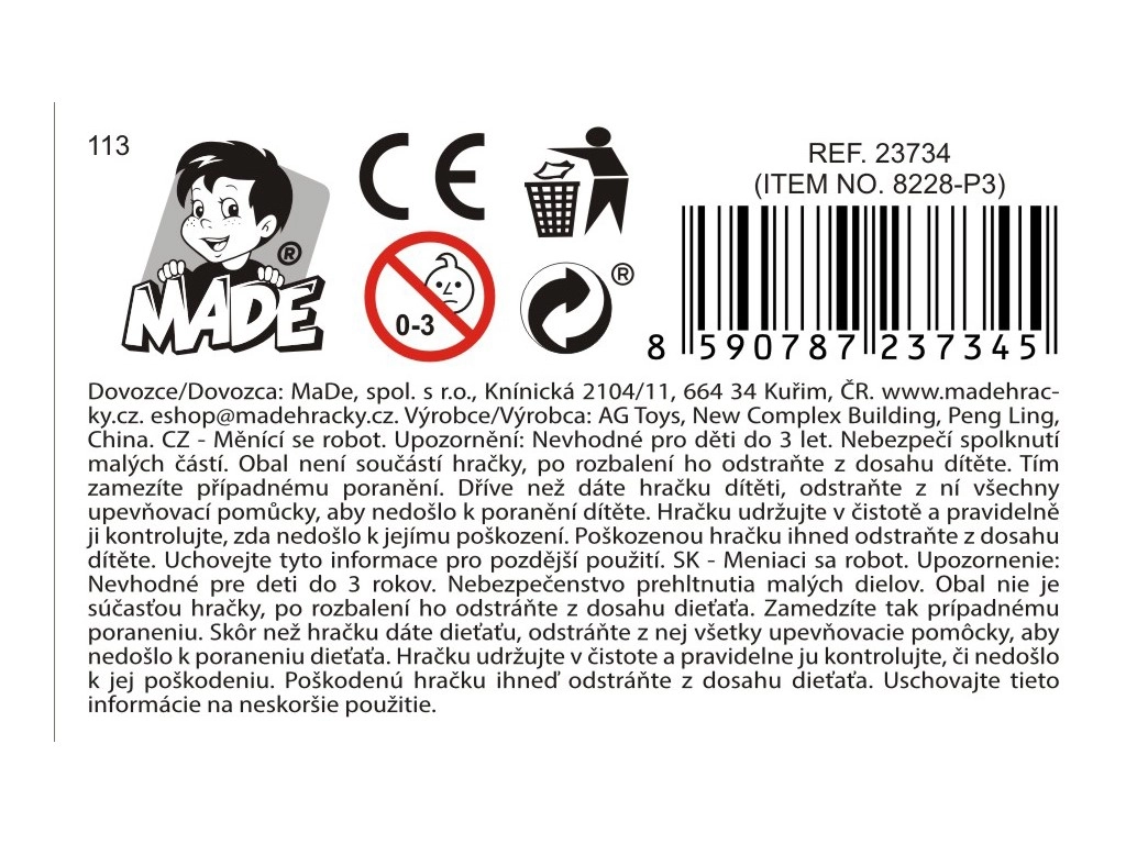 Ontdek actievolle pret met de robotische strijder, ontworpen om dagelijks spelen te weerstaan. Dankzij de compacte hoogte van 25 cm past hij op een plank of in de speelgoedbox en zijn stabiele constructie ondersteunt zelfstandig en veilig spel.