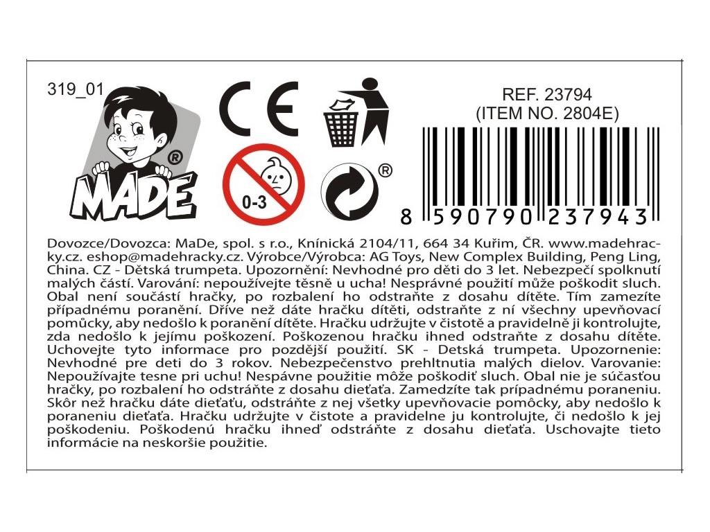 Deze kindertrompet is het ideale eerste muziekinstrument voor de allerkleinsten. Dankzij de compacte afmetingen en het lichte kunststof ontwerp is hij gemakkelijk te bespelen, veilig en toch stevig genoeg voor dagelijks gebruik. Hij ondersteunt de natuurlijke ontwikkeling van gehoor, ritme en motoriek en zorgt voor veel muzikaal plezier zonder batterijen.