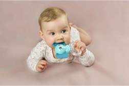 - Verlichting bij doorkomende tandjes: zachte siliconen masseren het tandvlees op milde wijze.