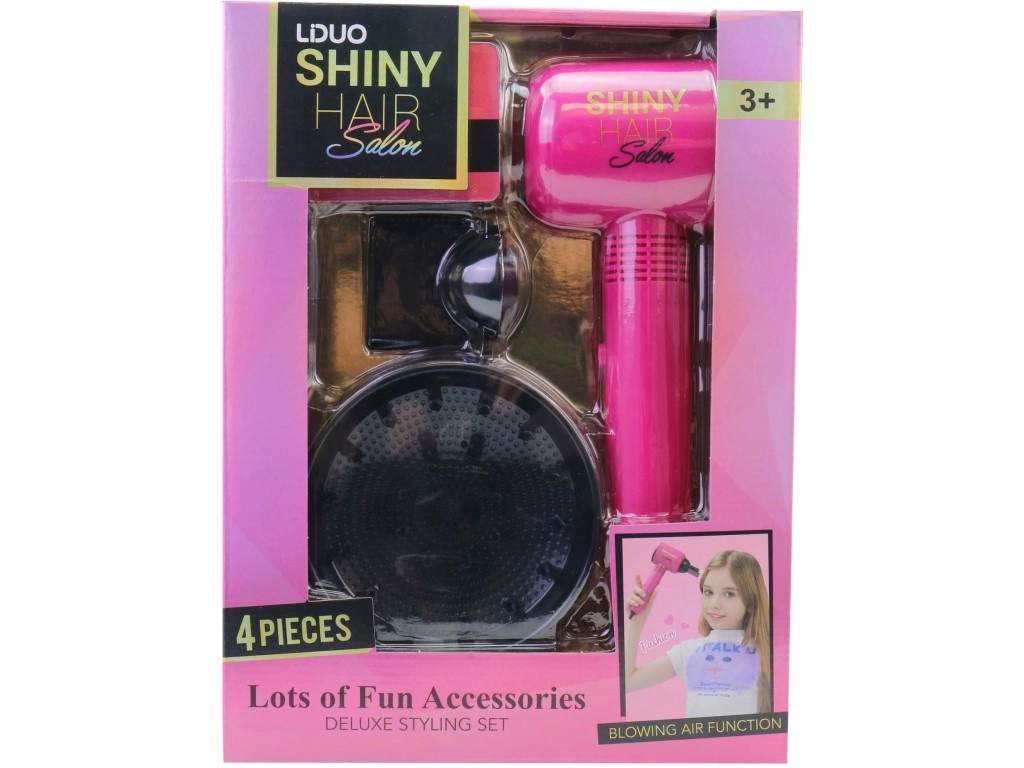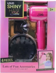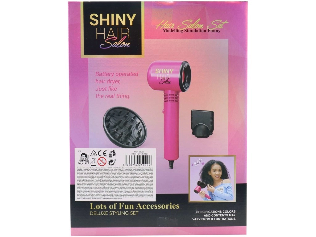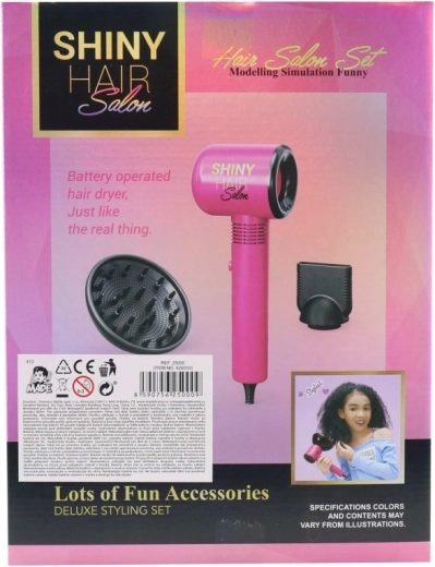 De haarstudio met kinderföhn is een geweldige speelgoedset voor kleine kapsters vanaf 3 jaar. Biedt veilige speelpret, is gemaakt van hoogwaardige kunststof en ligt dankzij de compacte afmetingen prettig in de hand. Werkt op 3 AAA-batterijen (niet inbegrepen).