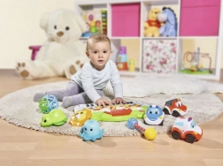 Deze blauwe bad-octopus is ideaal voor speels ontdekken van water. Vul hem door onder te dompelen, bedek de openingen op het hoofd met je vinger en laat na het optillen het water aan de onderkant als een douche uitstromen. Eenvoudige bediening ondersteunt de oog-handcoördinatie en leert het kind de principes van oorzaak en gevolg.