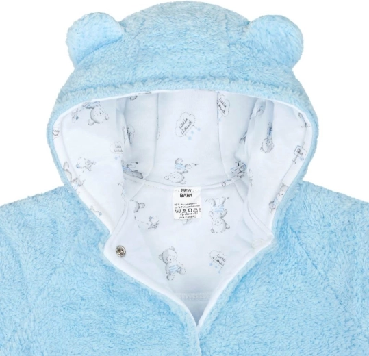 Het winter babyjasje New Baby Nice Bear is ontworpen voor maximaal comfort en warmte tijdens het koude seizoen. De buitenlaag van aangename warme fleece beschermt tegen de kou, terwijl de 100% katoenen voering met all-over berenprint zacht is voor de gevoelige babyhuid. De capuchon met schattige oortjes geeft het jasje een speelse look en beschermt het hoofdje tegen de wind.