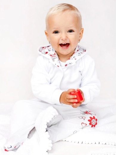 Schattige en comfortabele velours hoodie voor baby’s in maat 68, versierd met een lieveheersbeestje-applicatie. Biedt aangenaam materiaal en eenvoudig onderhoud – ideaal voor elke dag. Zijdezachte velours afwerking, capuchon voor extra warmte en schattig motief waar je dol op zult zijn.