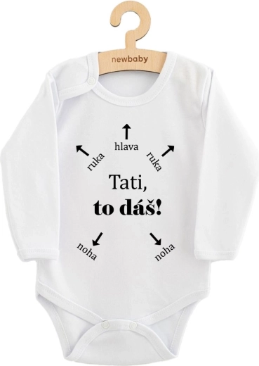 Schattig NEW BABY-rompertje met lange mouwen en de tekst Papa, jij kunt dit!, gemaakt van 100% katoen voor maximaal comfort. De kleuren van de print zijn gecertificeerd en veilig voor baby’s. Praktische drukknoopsluiting op de schouder en tussen de beentjes maakt aankleden en verschonen eenvoudig.