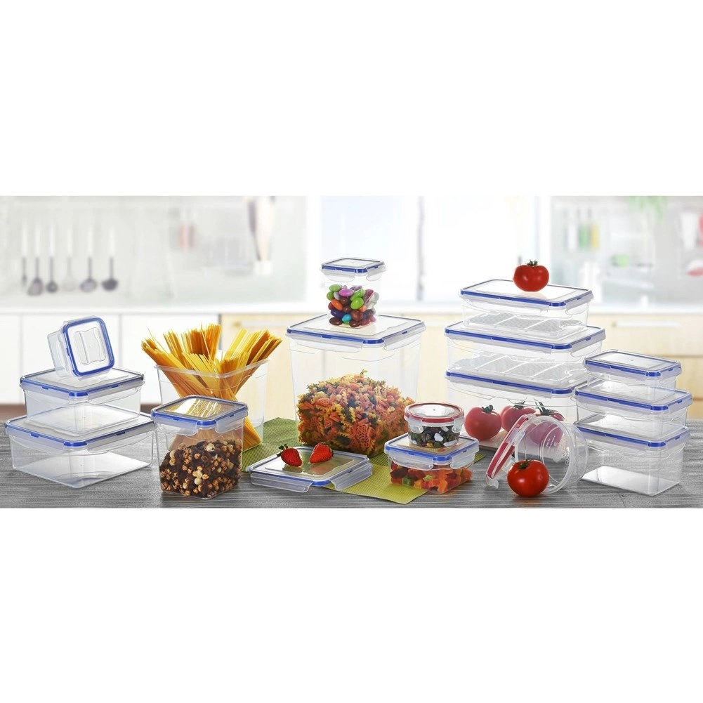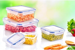 Transparante wanden voor snelle inhoudscontrole en stapelbaarheid om ruimte te besparen in koelkast en kasten.